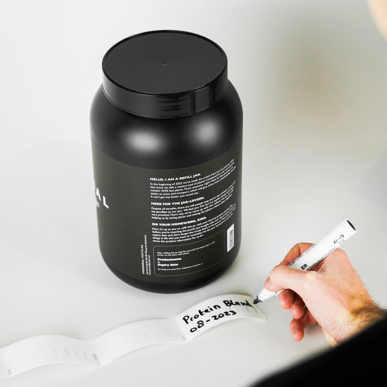 Fijn concept dat je niet iedere keer een pot met protein poeder toegestuurd krijgt. De pot die apart te bestellen is is zeer degelijk.